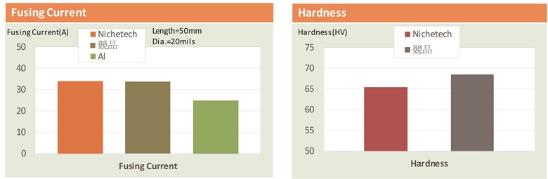 • Lower resistivity, higher fusing current and conductivity, better match temperature-expansion coefficient, higher reliability against heavy aluminum wire