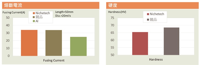 • 與傳統粗鋁線相比,我們粗銅線具有更低的電阻率,能提供更高的熔斷電流;更高的導熱性能及更匹配的熱膨脹係數,以提供更高的可靠性能。